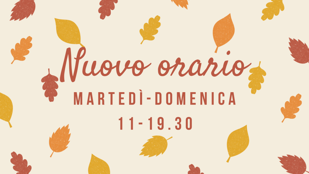 E con l’autunno cambia anche il nostro orario di apertura, saremo aperti da martedì a domenica dalle 11 alle 19.30!