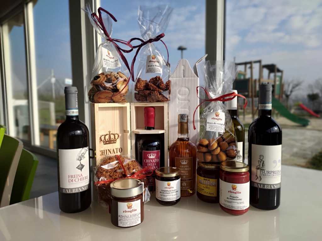 Da Rivoglio potrete trovare tante golose proposte che certamente renderanno molto felice chi le riceverà! Dalle realizzazioni artigianali di nostra produzione ai prodotti dei nostri fidatissimi partner come i vini e i distillati di Balbiano o il miele di Mauro Luban, eccellenti produttori del nostro territorio.