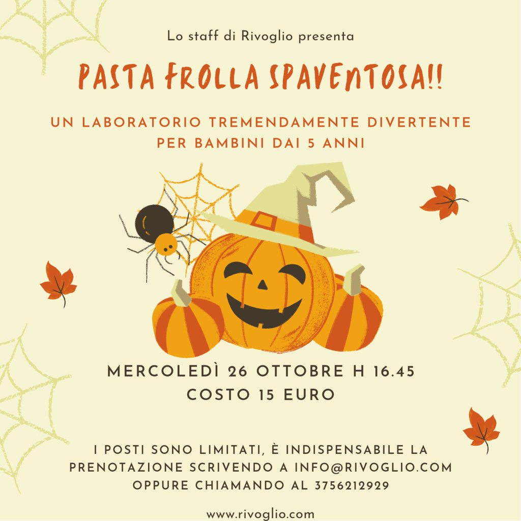 In occasione di Halloween Rivoglio propone un “mostruoso” laboratorio di pasta frolla per bambini dai 5 anni in su, impareremo a lavorare la pasta frolla e realizzeremo dei biscotti….spaventosi!!