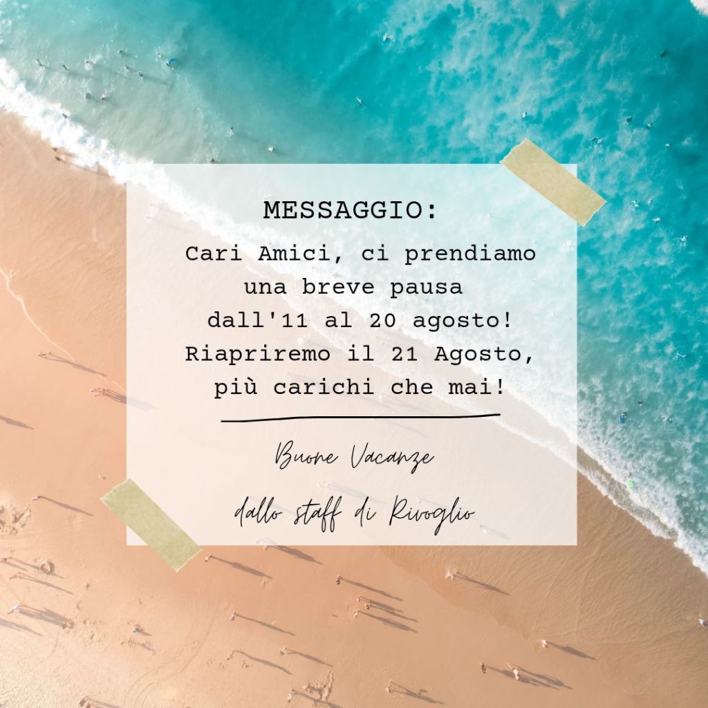 Rivoglio sarà chiuso dal 12 al 19 agosto, vi aspettiamo il 20 agosto con tutti i nostri prodotti.