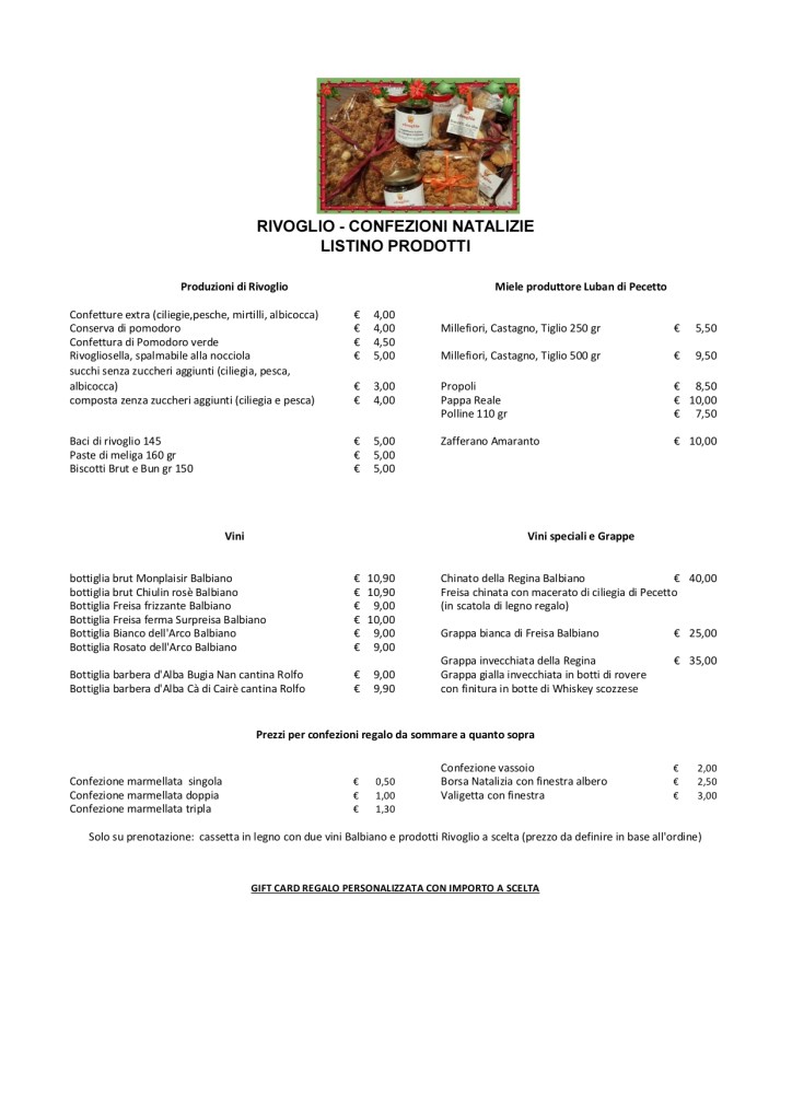 Costo di euro 15 a bambino, necessaria la prenotazione scrivendo a info@rivoglio.com oppure telefonando al 3756212929.